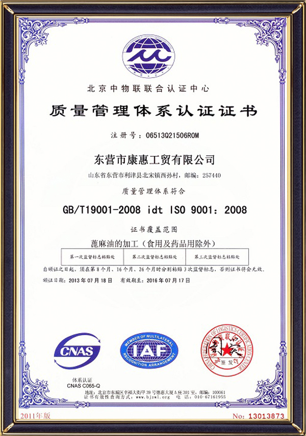 質(zhì)量管理體系認(rèn)證證書